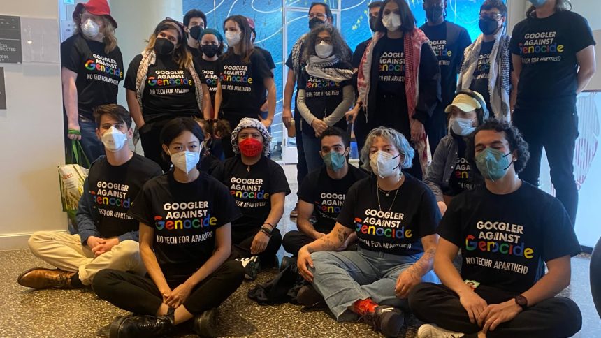 The workers were also protesting their labor conditions — namely “that the company stop the harassment, intimidation, bullying, silencing, and censorship of Palestinian, Arab, Muslim Googlers — and that the company address the health and safety crisis workers, especially those in Google Cloud, are facing due to the potential impacts of their work,” according to a release by the campaign.
